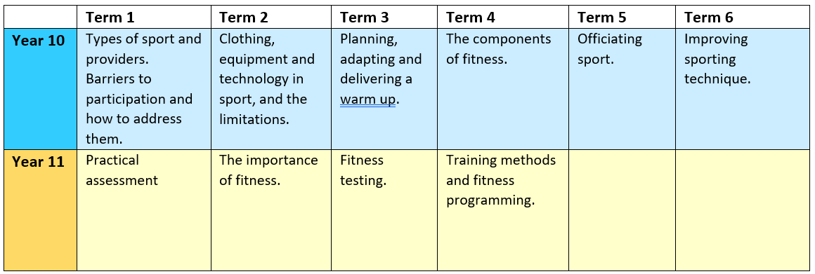 BTEC Sport curriculum plan: